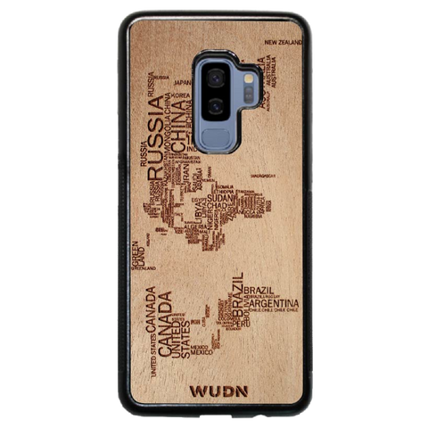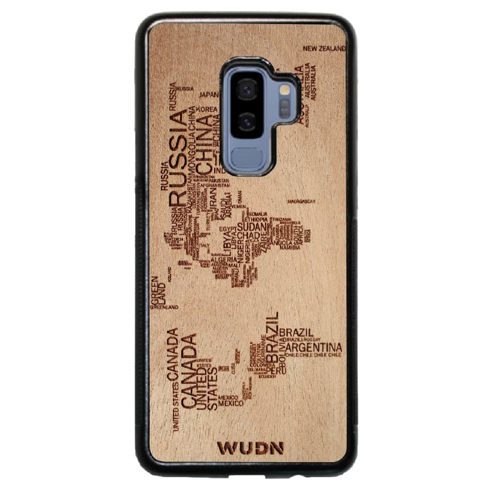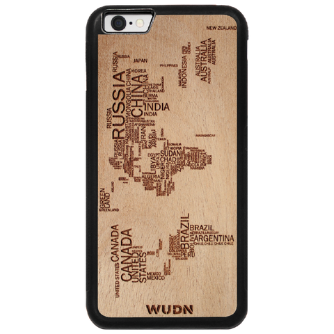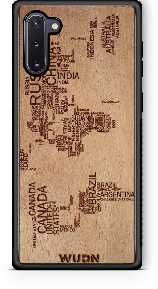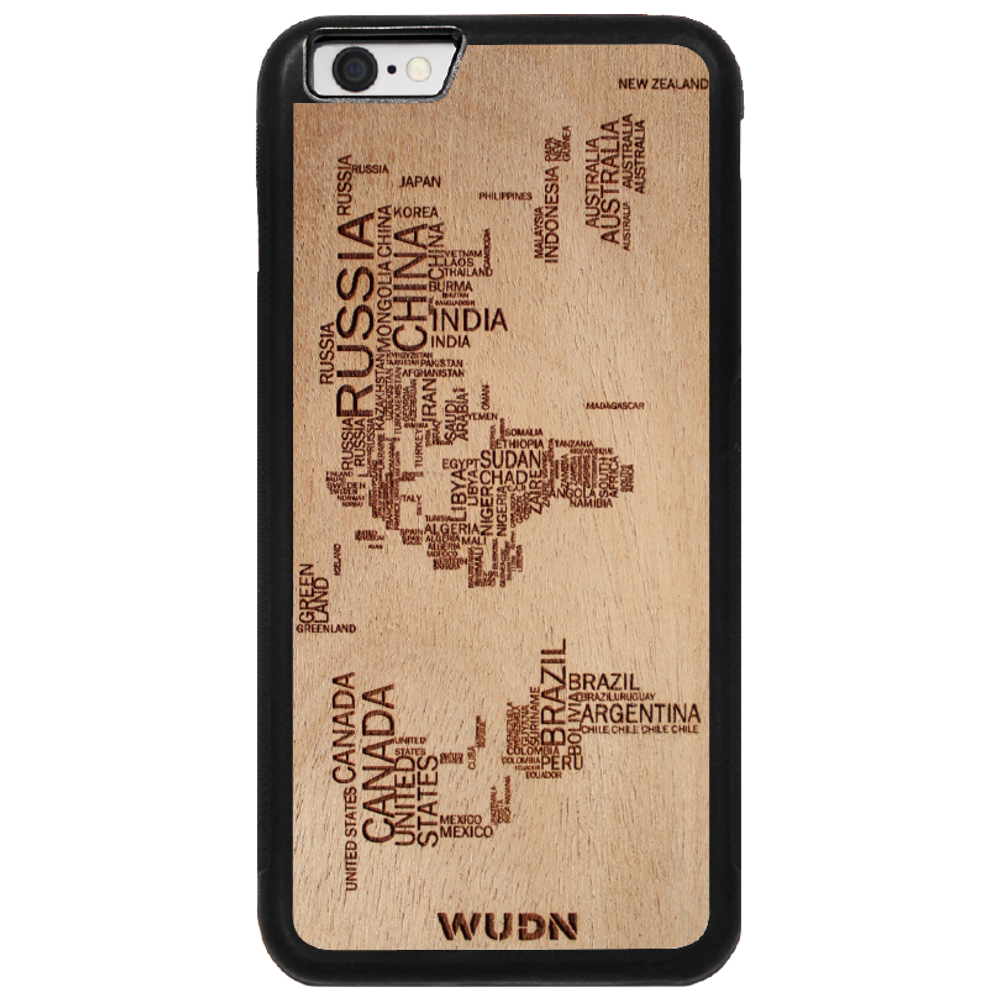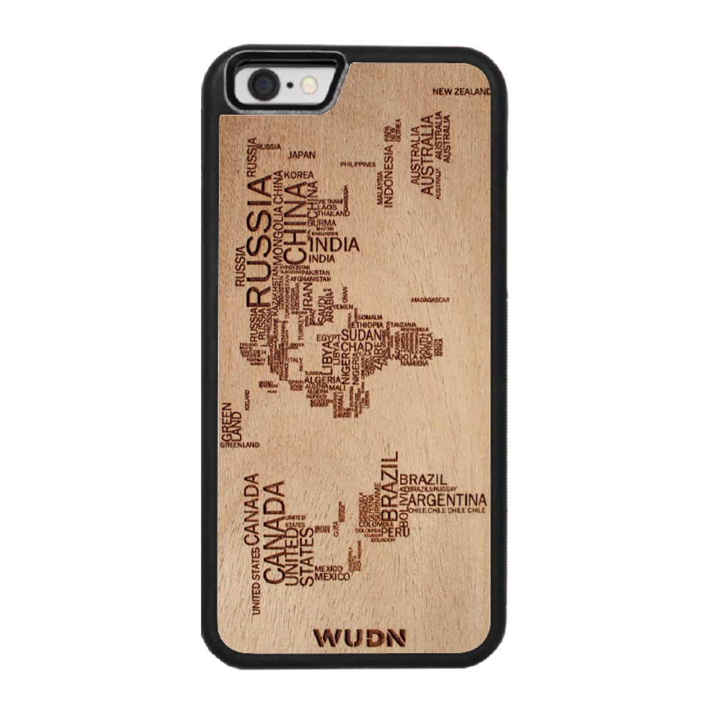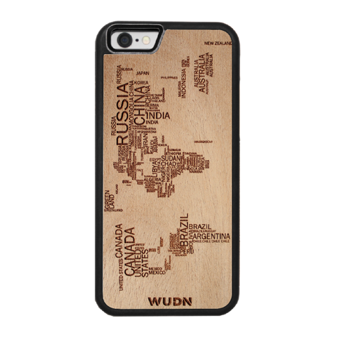 - The world map traveler case is engraved into Mahogany. Other WUDN cases are available in black walnut, aromatic cedar, or caramelized bamboo wood finish