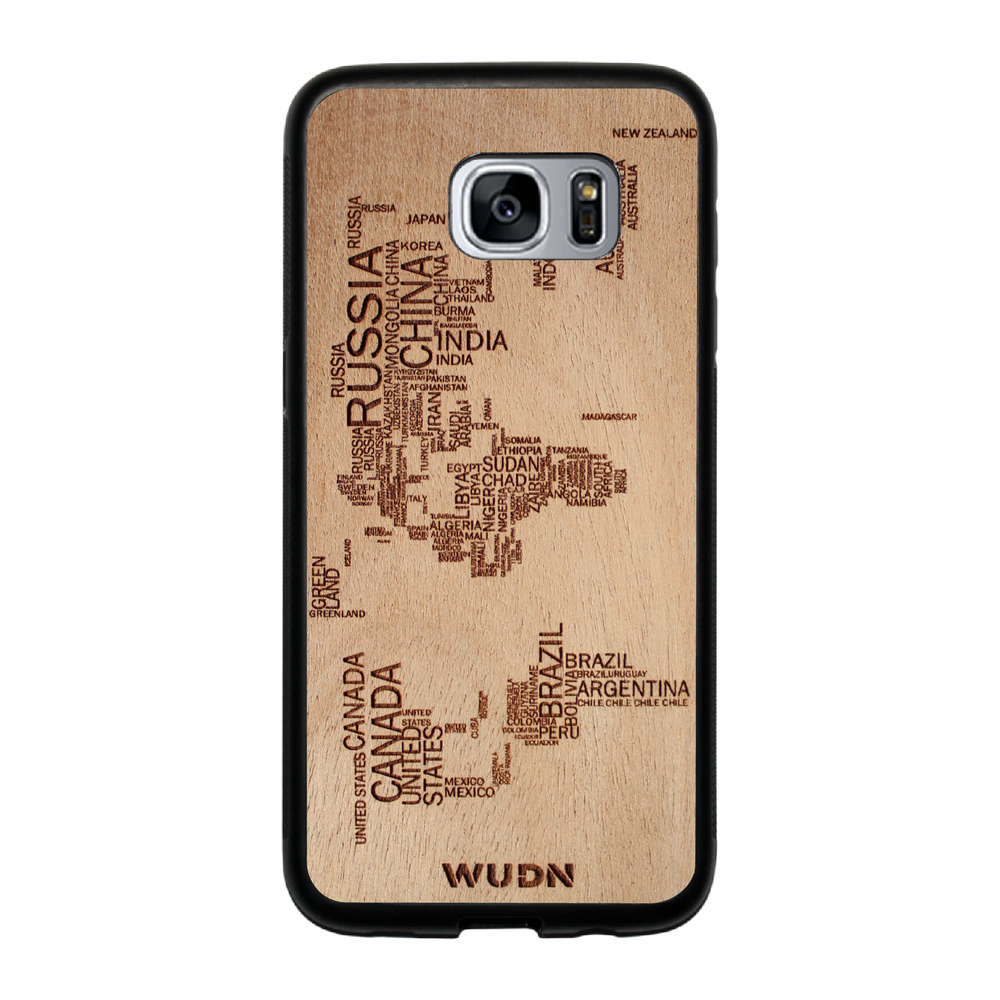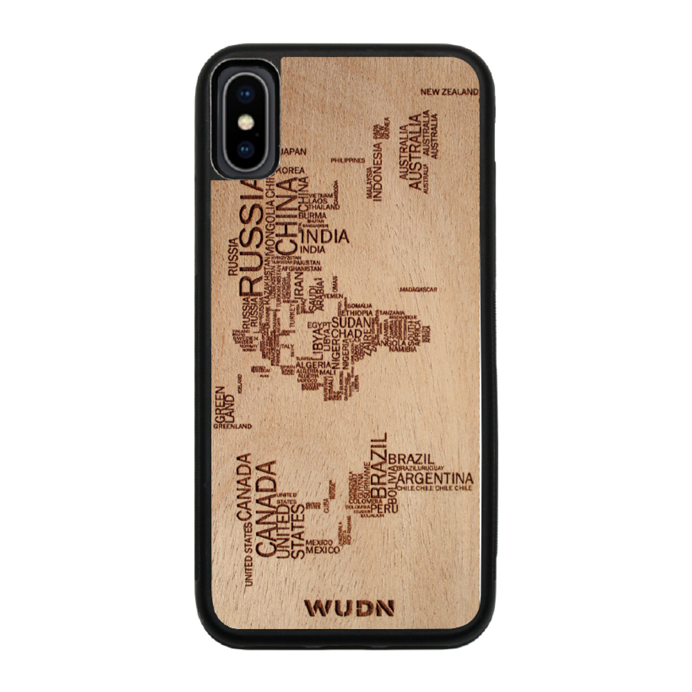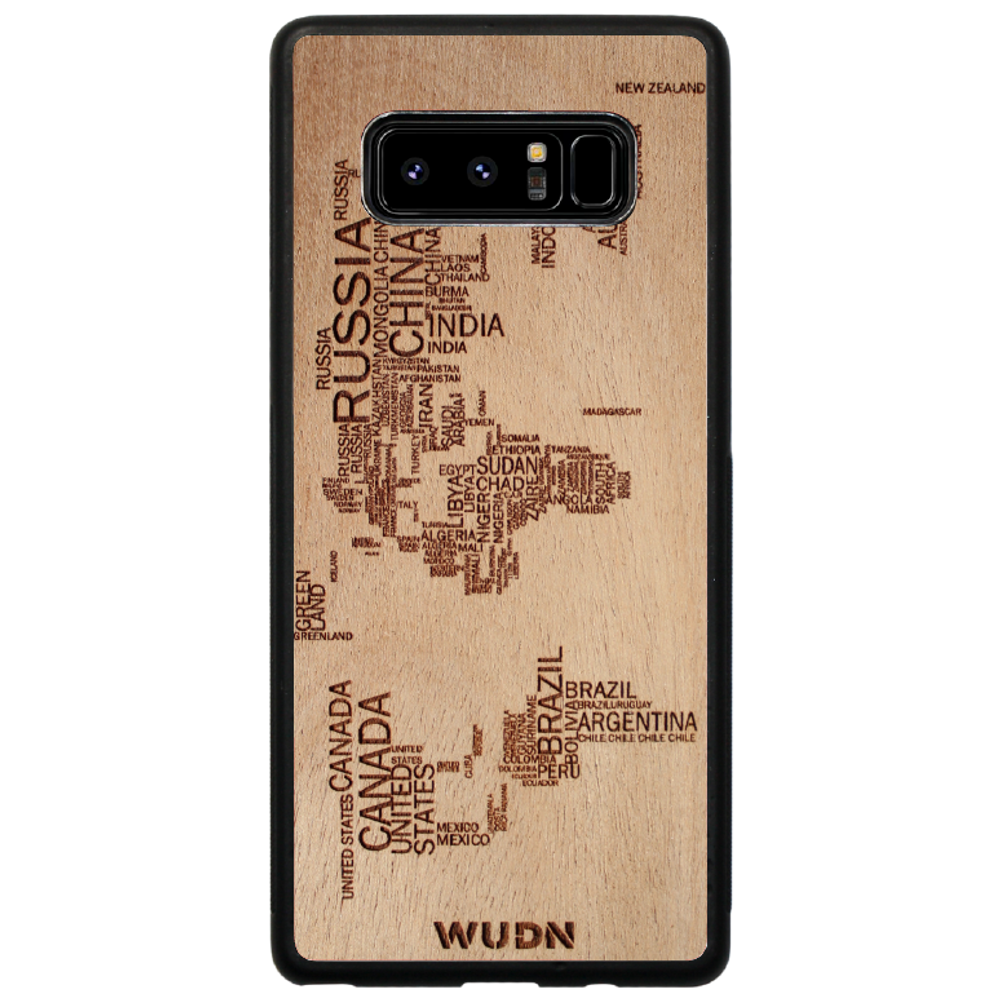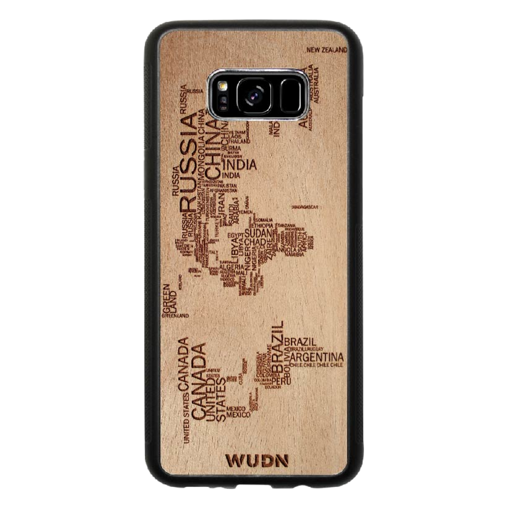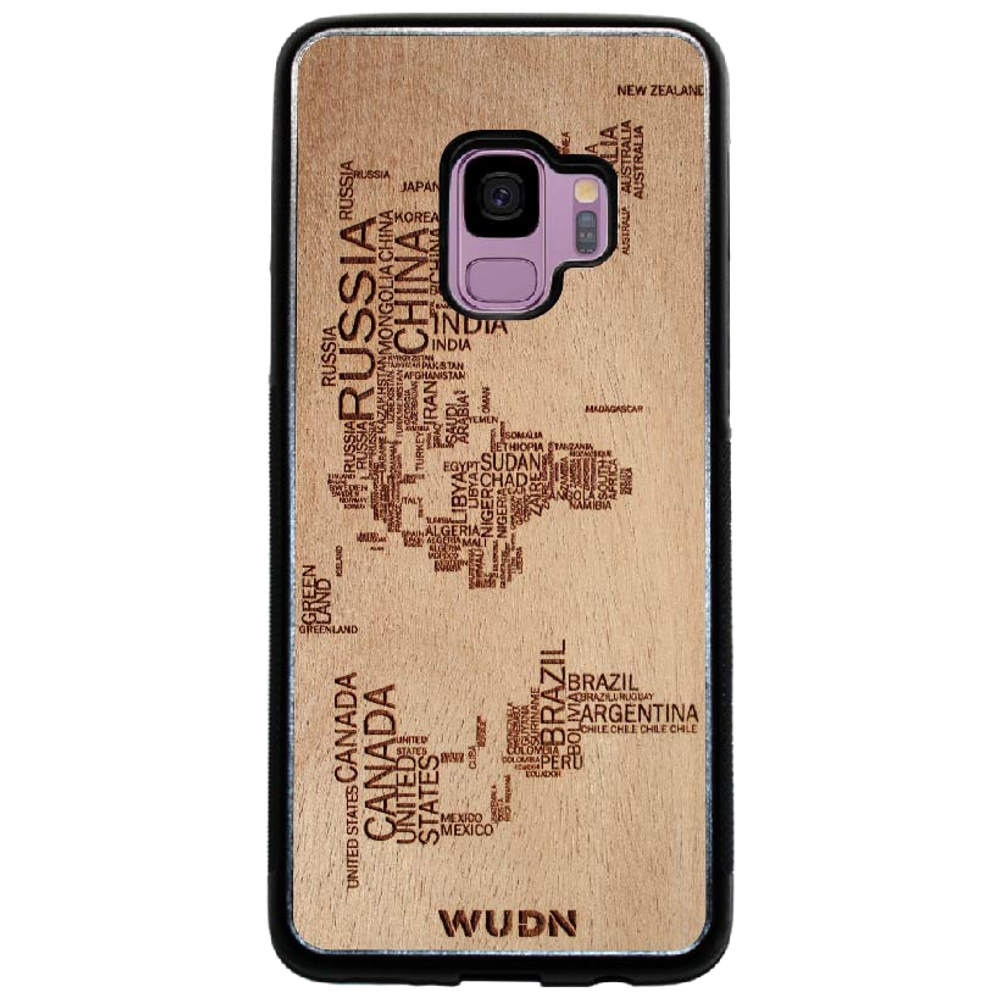 - The world map traveler case is engraved into Mahogany. Other WUDN cases are available in black walnut, aromatic cedar, or caramelized bamboo wood finish