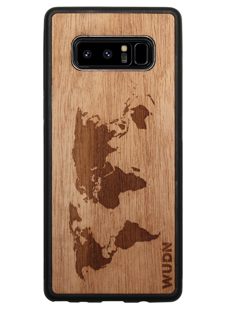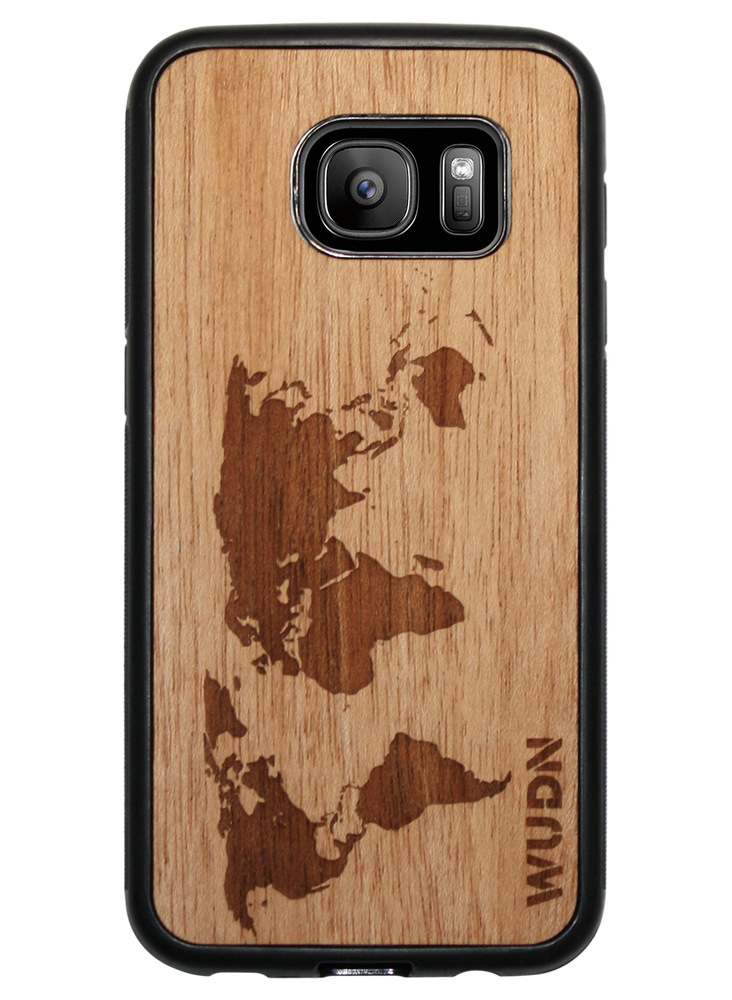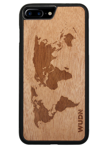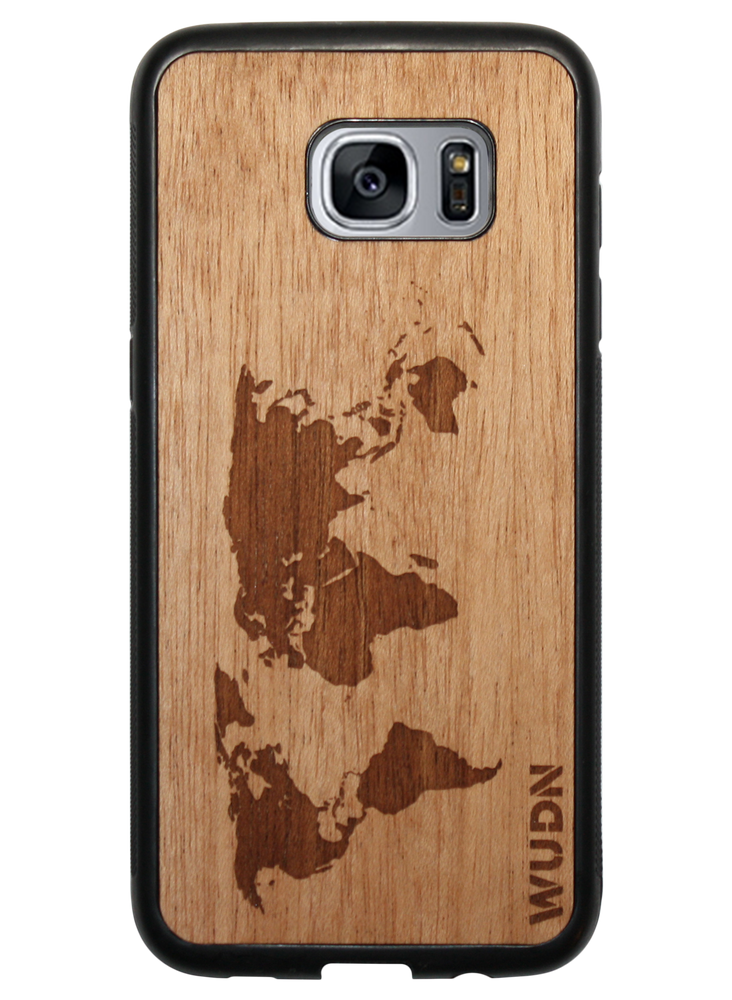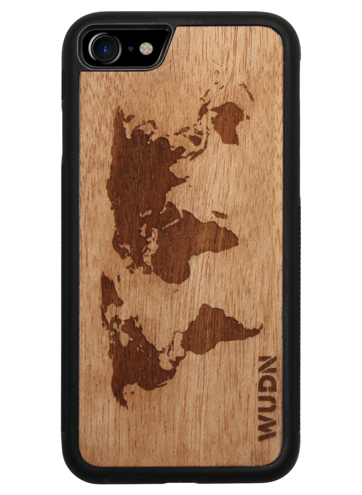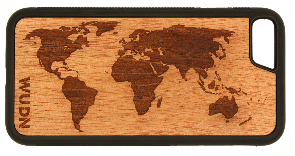 - The world map traveler case is engraved into Mahogany. Other WUDN cases are available in black walnut, aromatic cedar, or caramelized bamboo wood finish