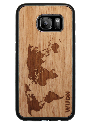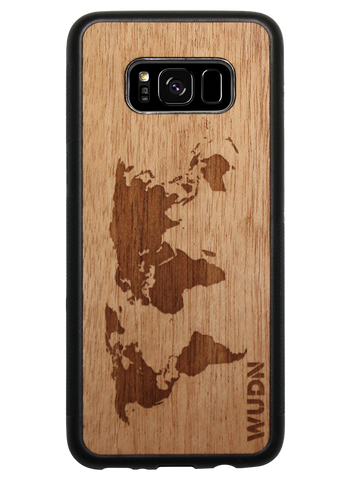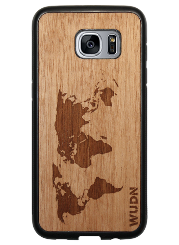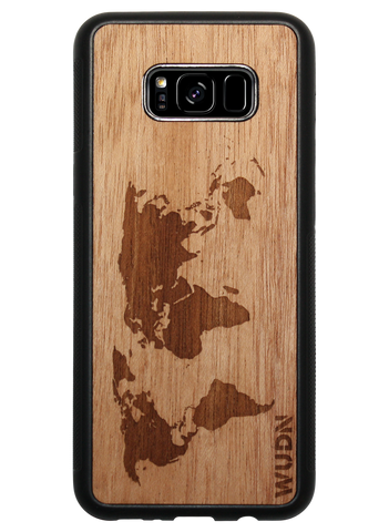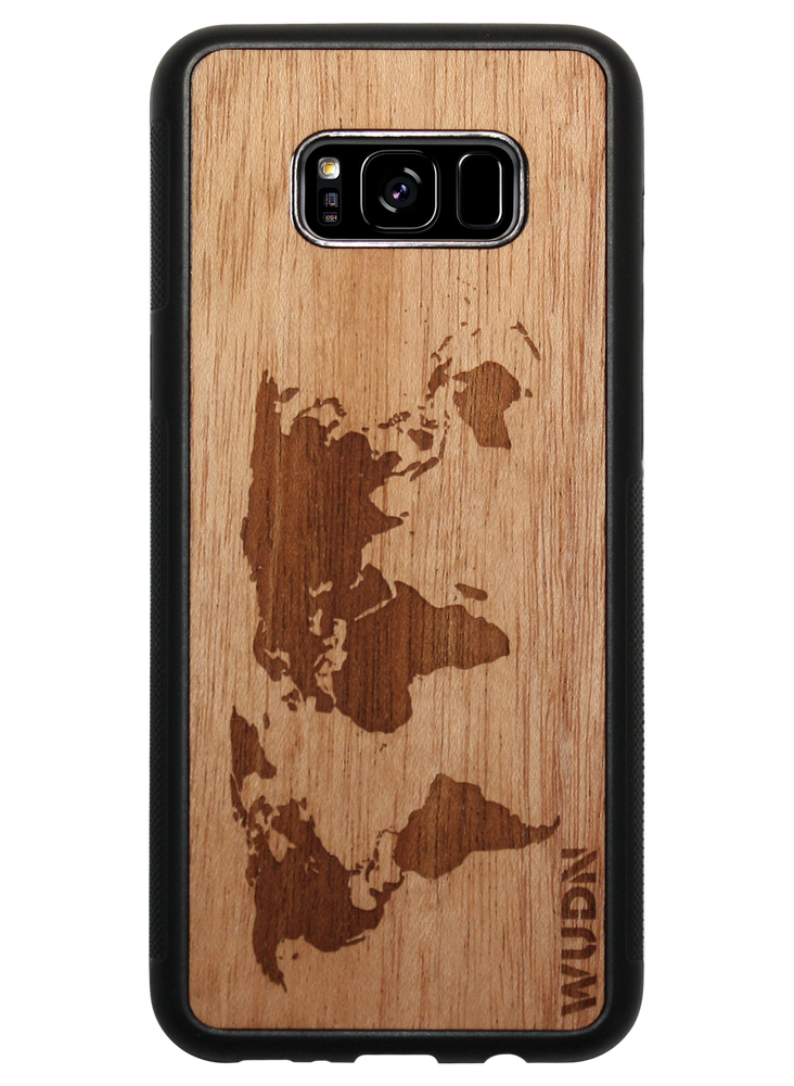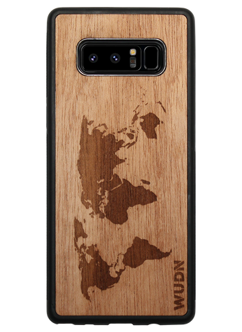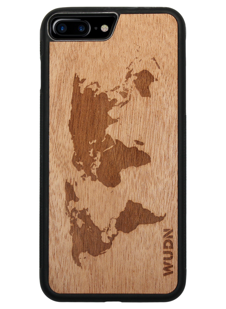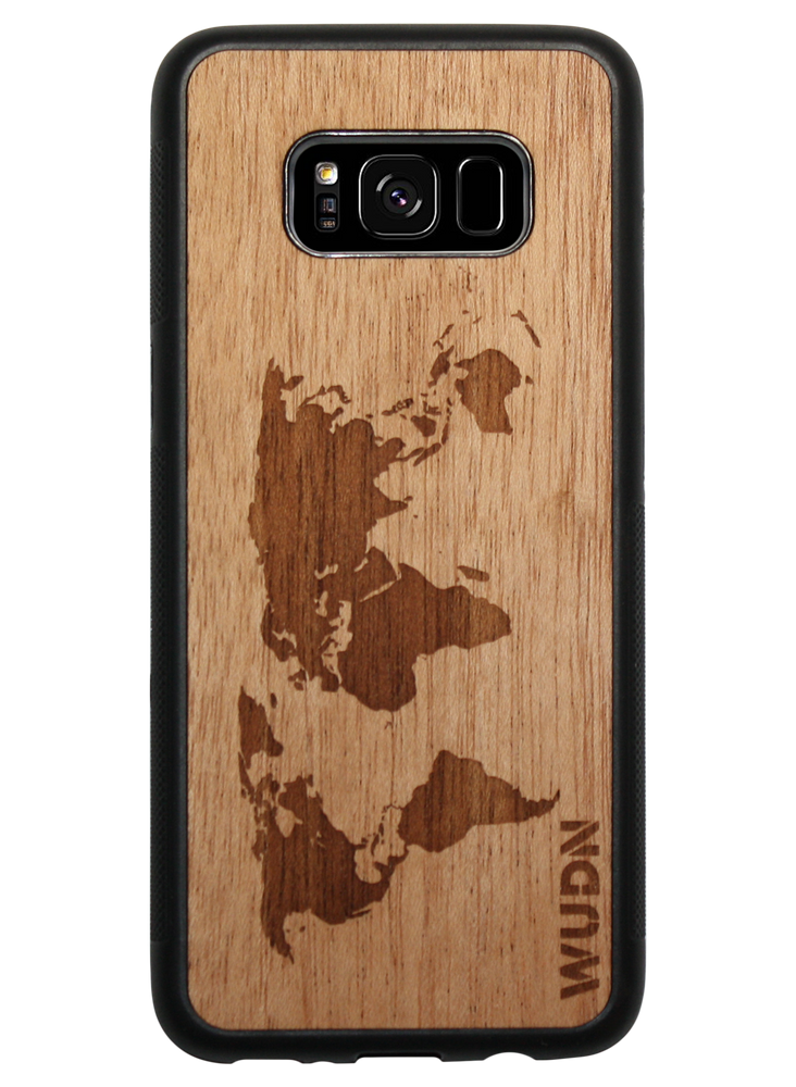 - The world map traveler case is engraved into Mahogany. Other WUDN cases are available in black walnut, aromatic cedar, or caramelized bamboo wood finish