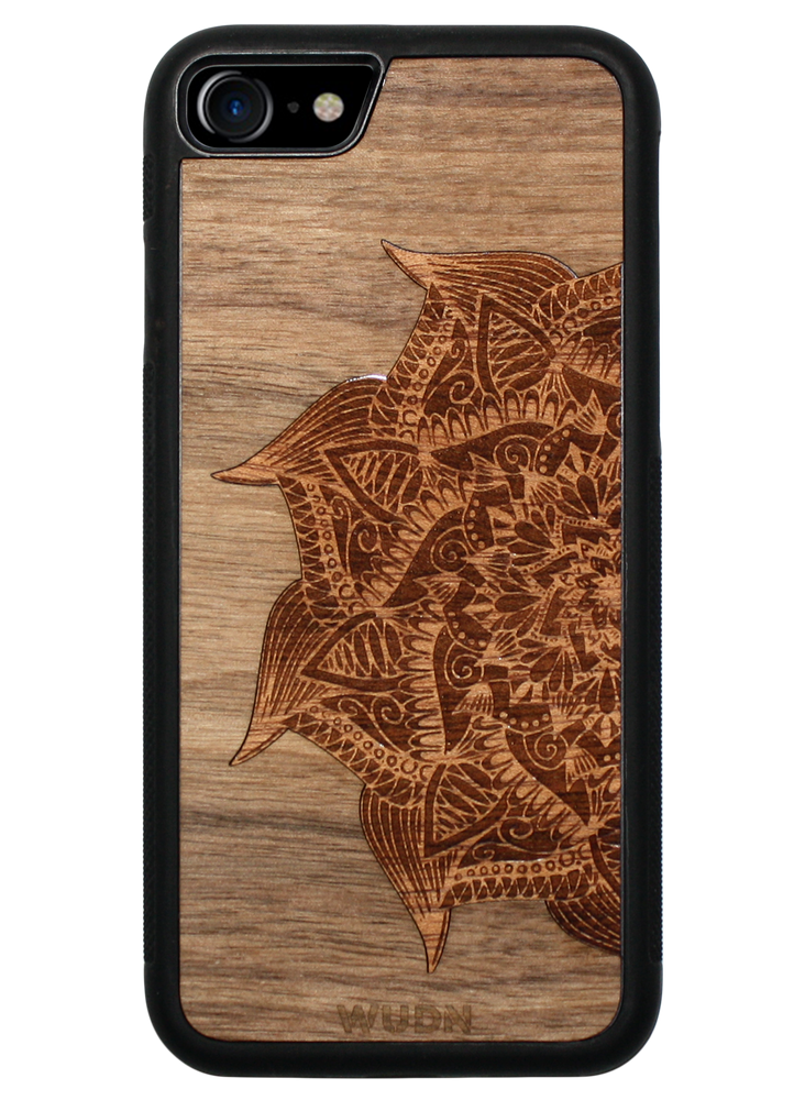 Ultra-Slim Wooden Phone Case | Mandala Walnut & Cedar Inlay