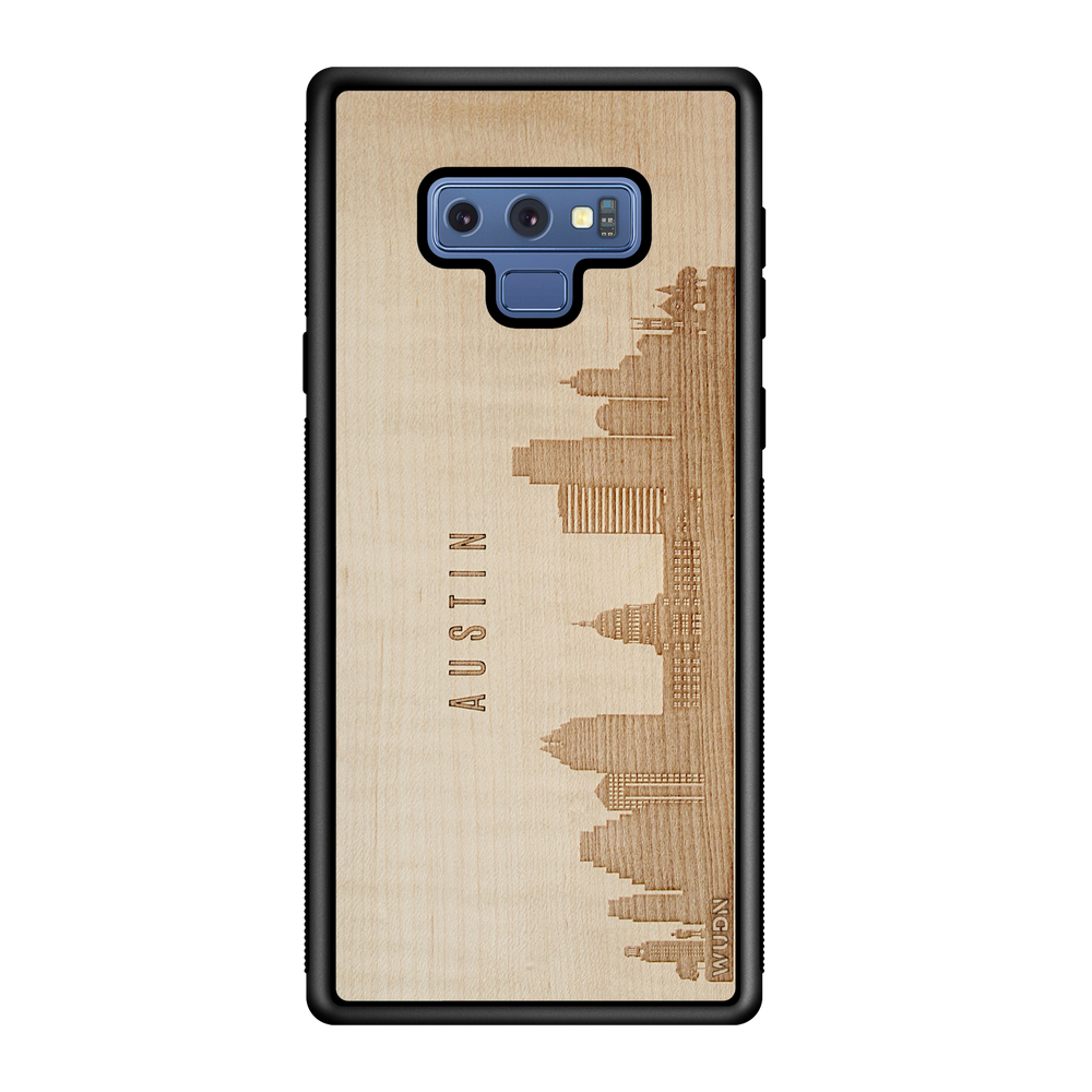 Austin TX CityScape Wooden Phone Case in Shimmering Maple