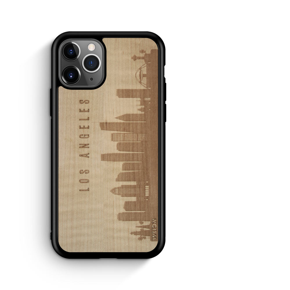 Los Angeles CA CityScape Wooden Phone Case in Shimmering Maple