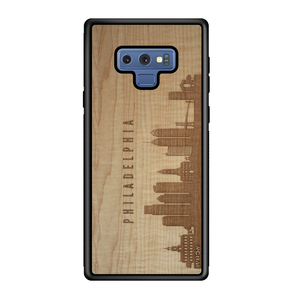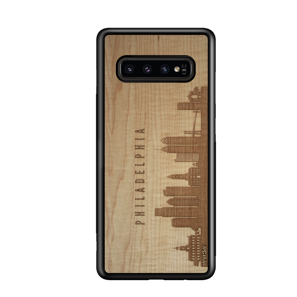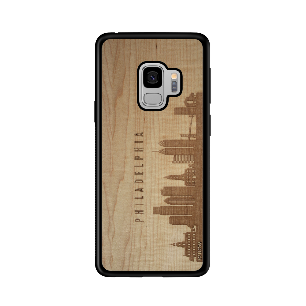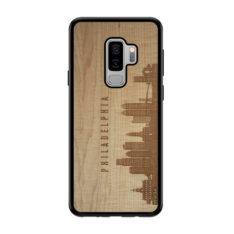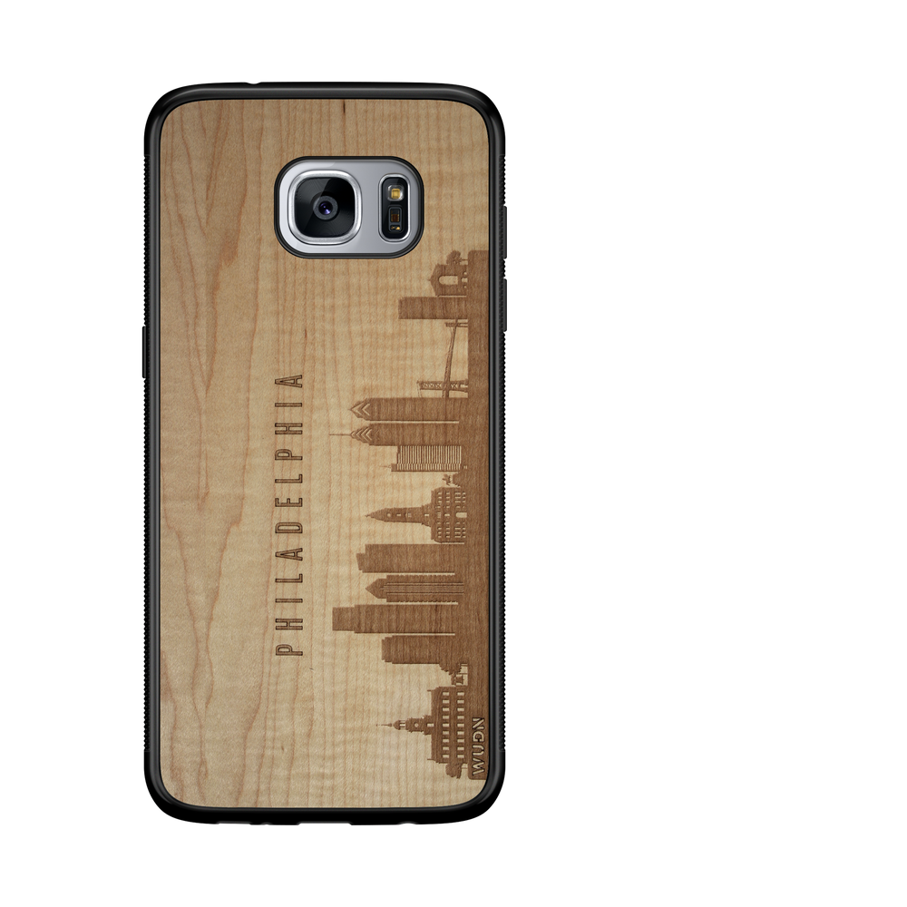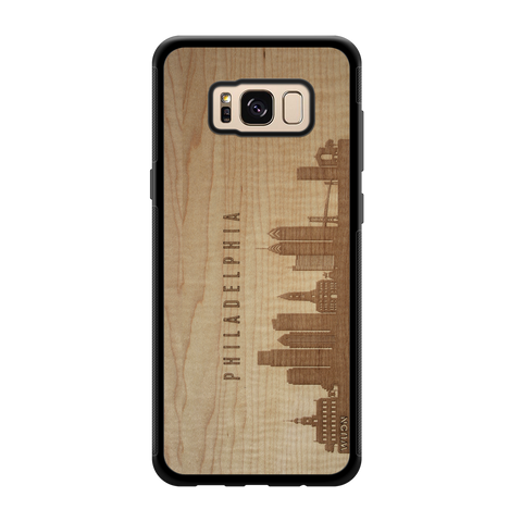 Philadelphia PA CityScape Wooden Phone Case in Shimmering Maple