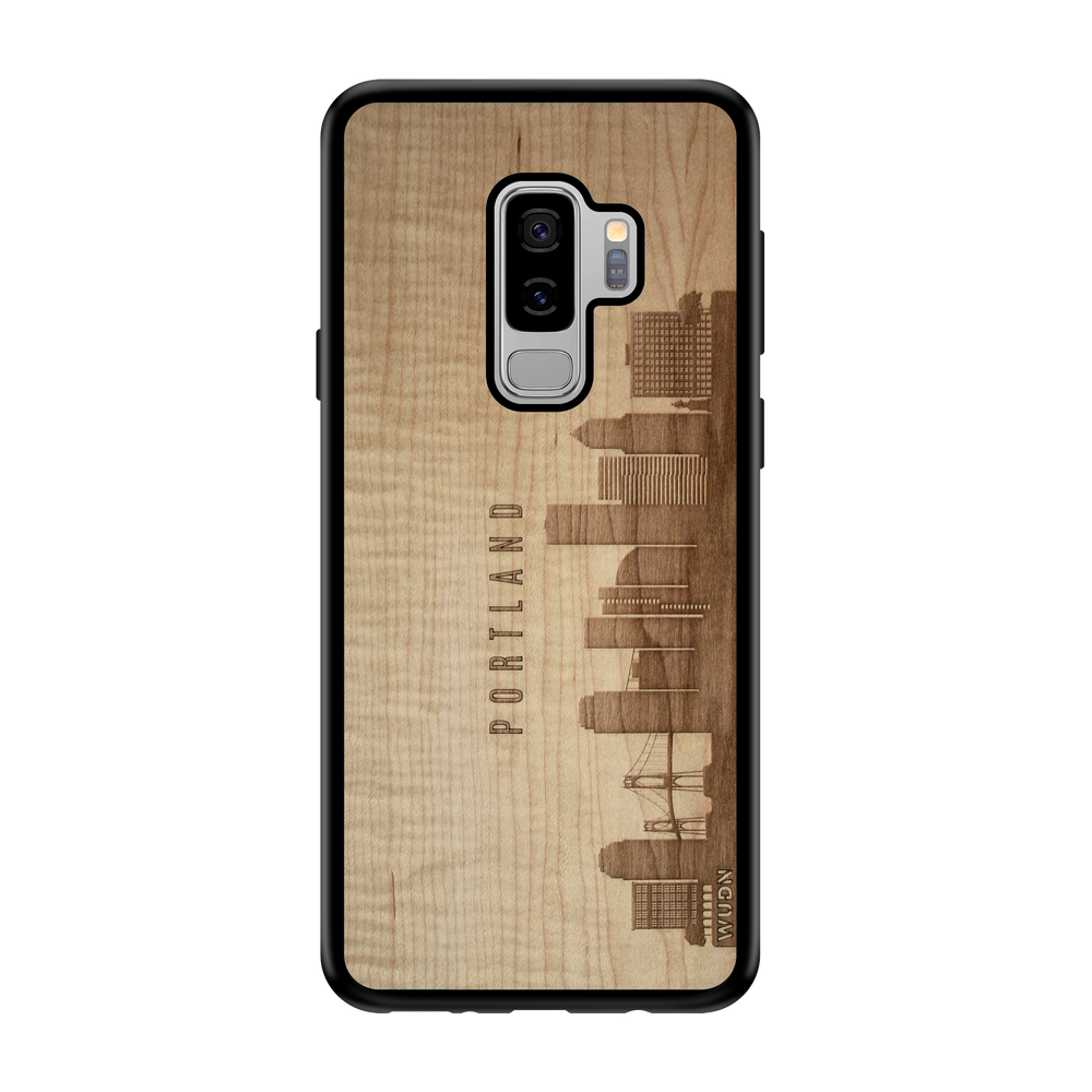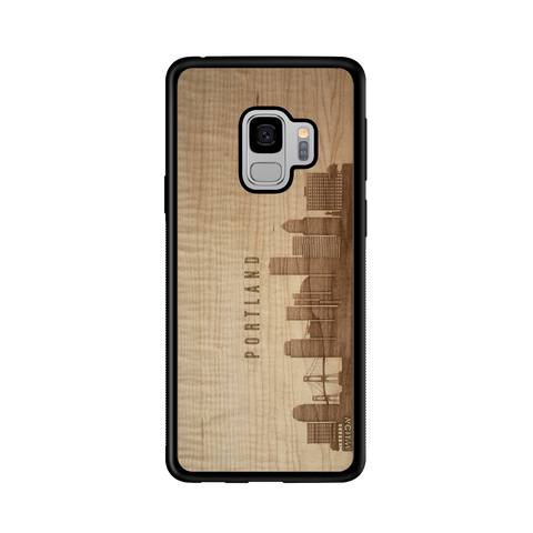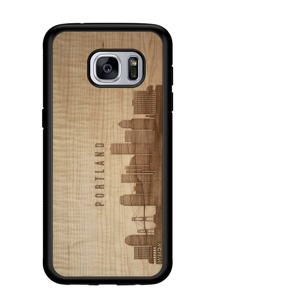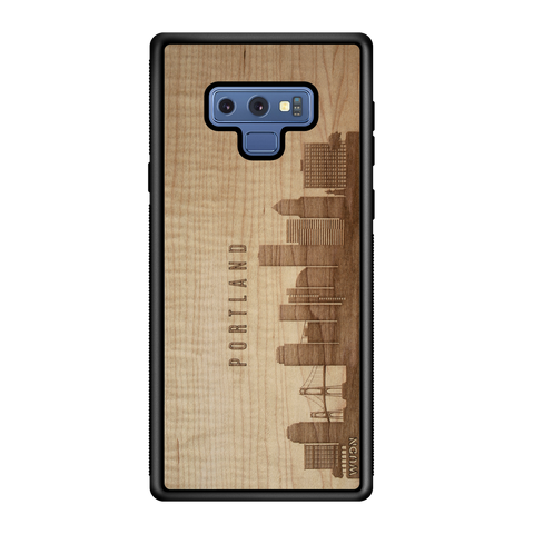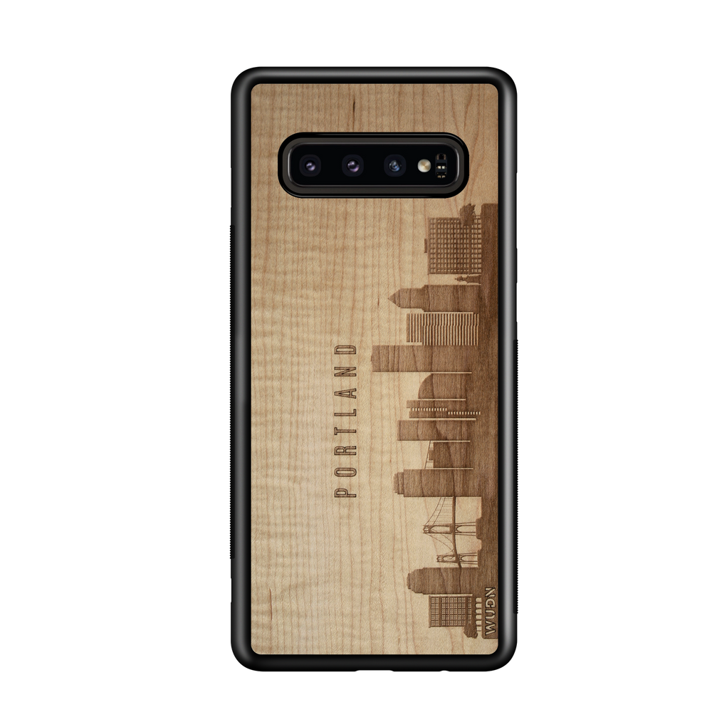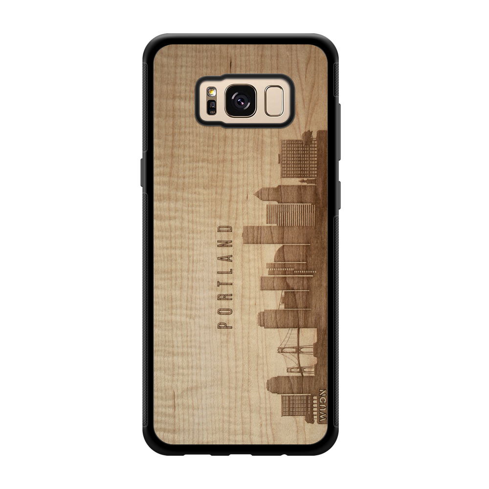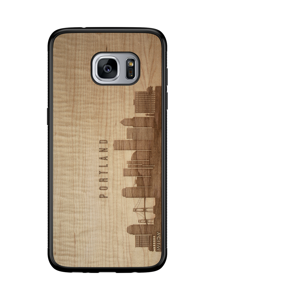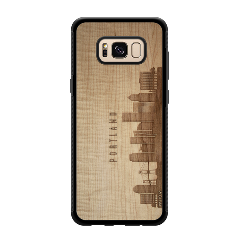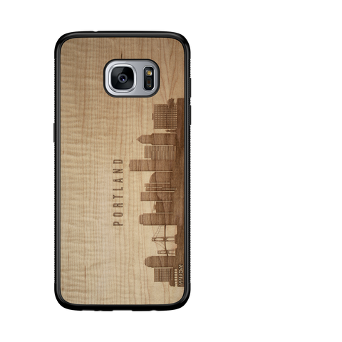 Portland OR CityScape Wooden Phone Case in Shimmering Maple