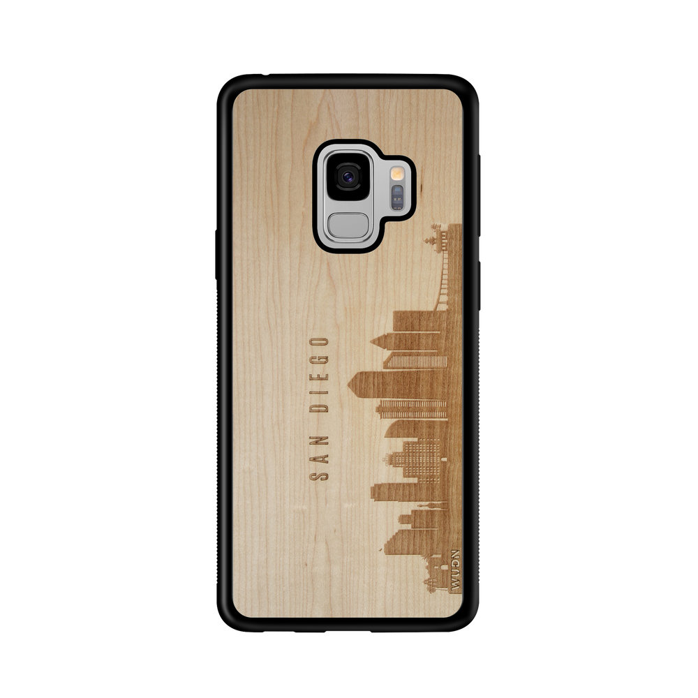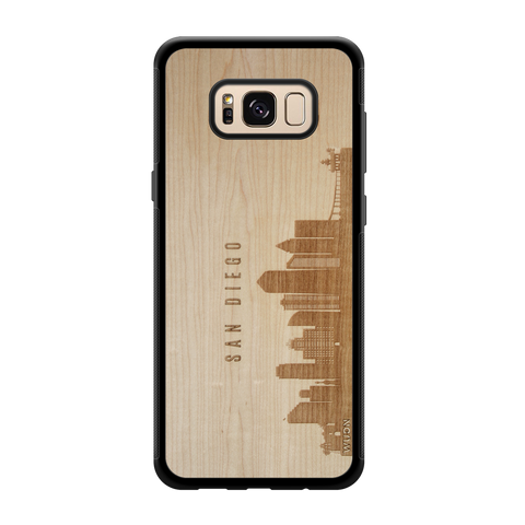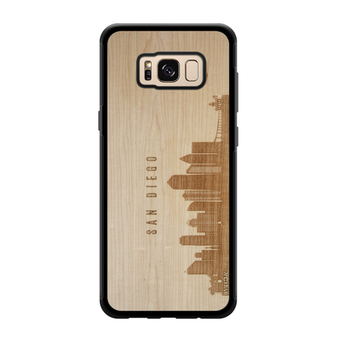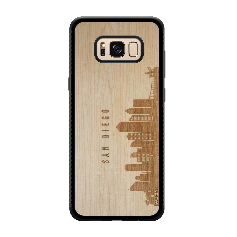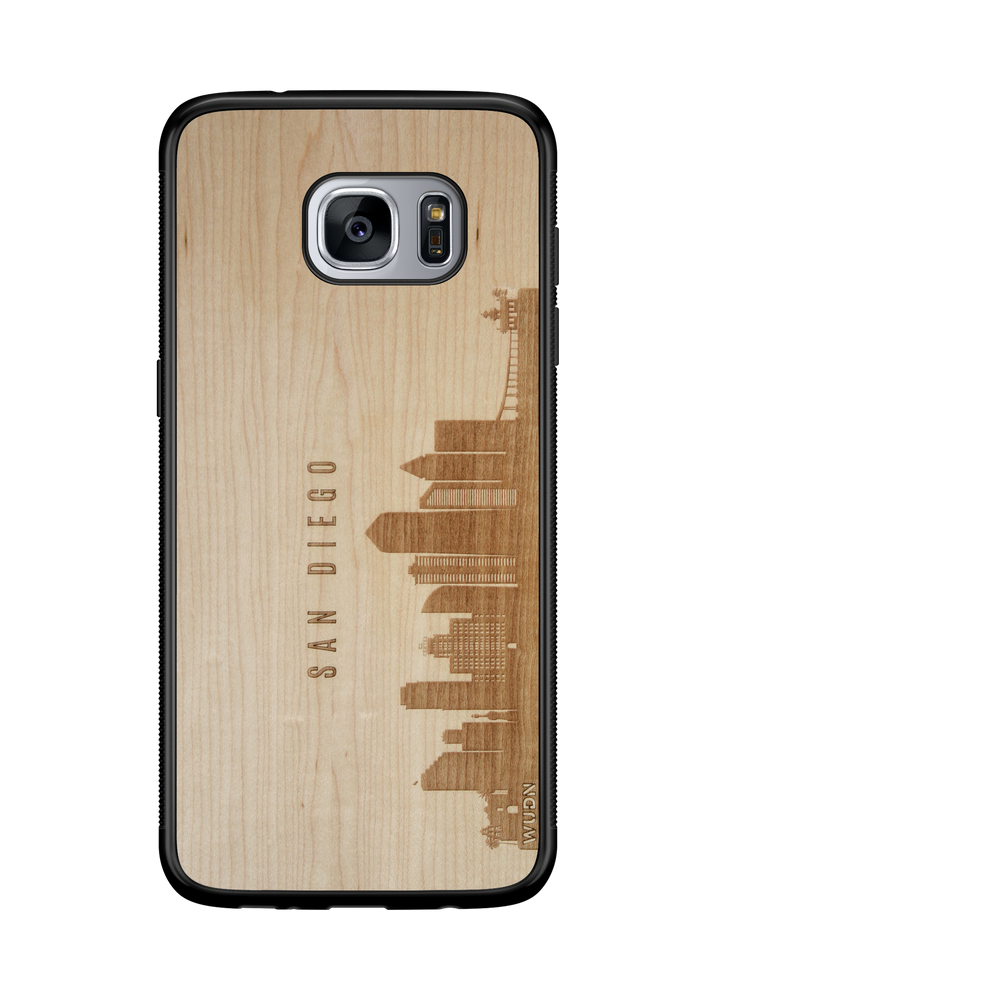 San Diego CA CityScape Wooden Phone Case in Shimmering Maple