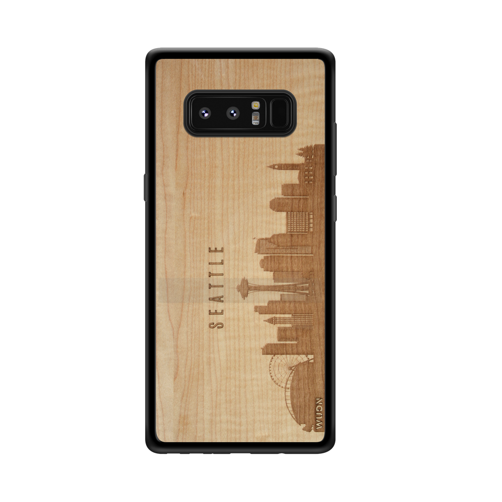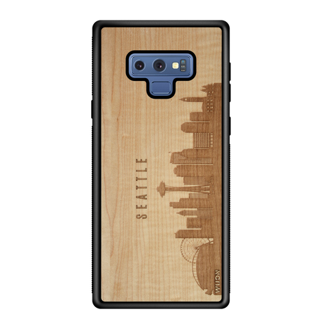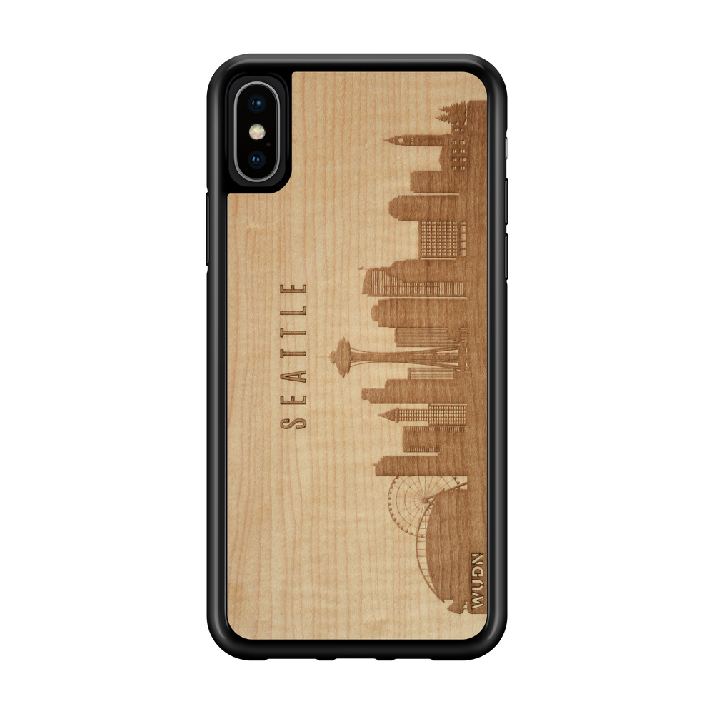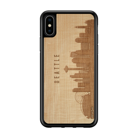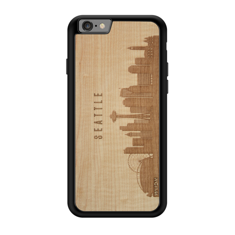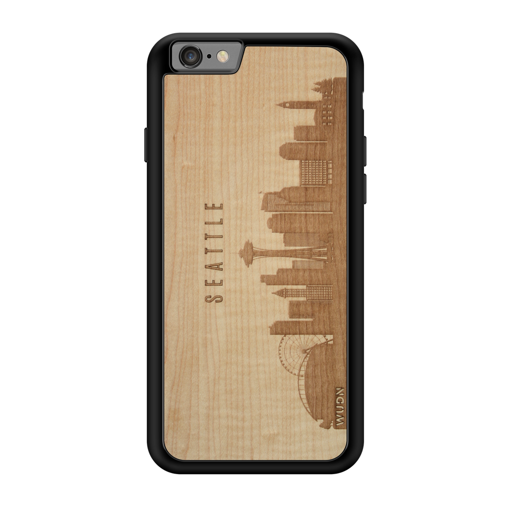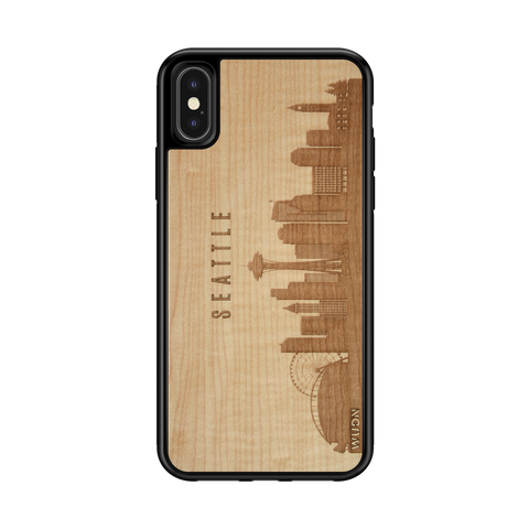 Seattle WA CityScape Wooden Phone Case in Shimmering Maple